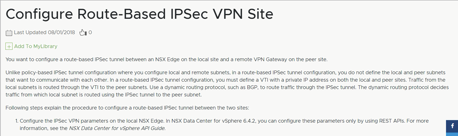 - It’s absolutely possible to set up a Route-Based VPN on an NSX-V Edge (v6.4.2 or above) but it’s more complicated.