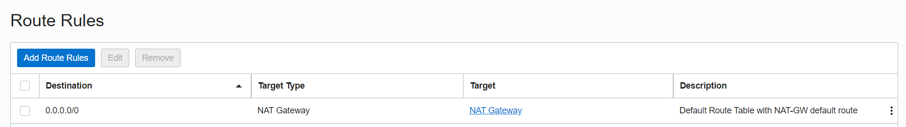 - An OCI “NAT Gateway” which provides our Internet Access.